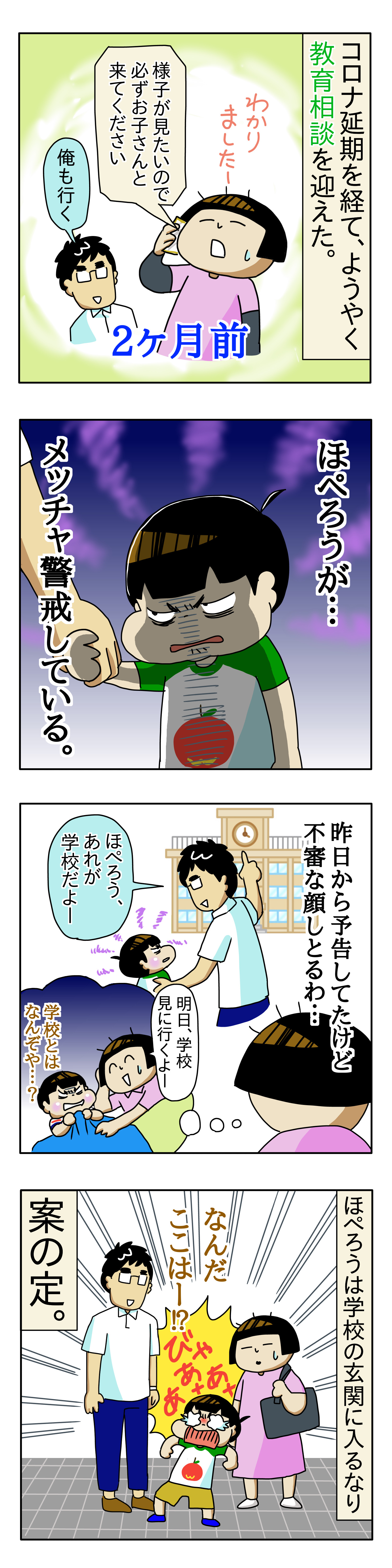我が子も体験入学で在校生が手をつないでくれて私と離れたとき、顔面蒼白で笑
