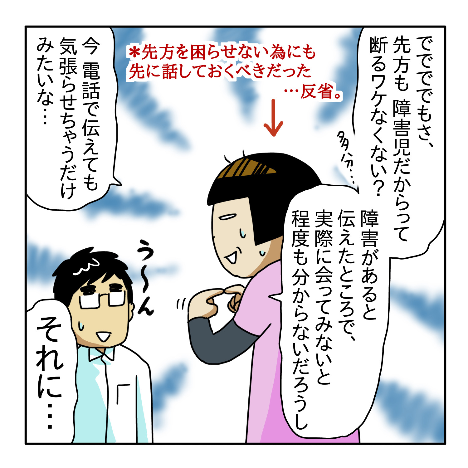 ↓ 障害の事を伝えなかったせいで