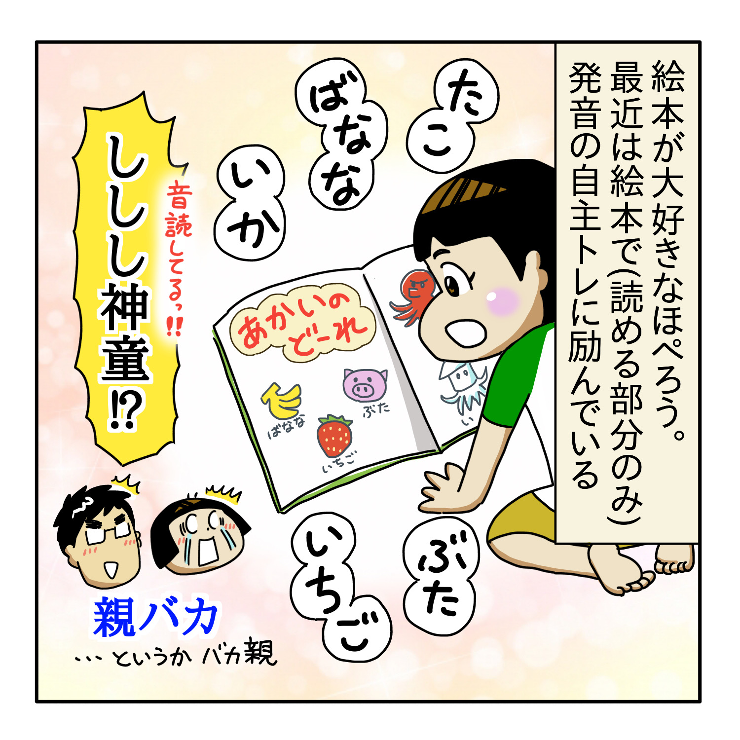 ほぺちゃん急に言葉が増え始めてますね。意味も分かってるし、おまけに文字も読める。