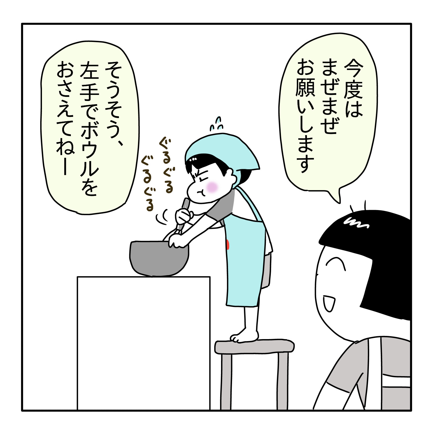助詞付き二語文にママとおやつ作り🥞ほぺろうくんの成長が加速しているように感じます😆