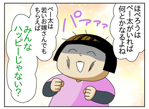 ヤサグレ時代28 ↓ 前回のお話 このブログはあくまで私の主観で書いてるのでぺー太にはぺー太の思うところがあったでしょう。遠回しなSOSも気付ける夫ではありません。ぺー太が忙しい事は知っているので手伝って欲しいと言うよりは『労い(ねぎらい)の言葉をかけて欲しい』という気持ちがあっ ... 2020年12月15日 続きを読む