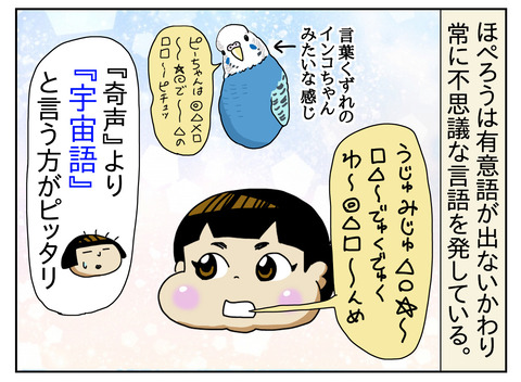 宇宙語を翻訳するとエライ事になるかも説 宇宙から何かを受信してるんじゃないかってくらい、常に不思議言語を発している。ほぺろうが日本語を理解していないのではなく、我々人類がほぺろうを理解していないだけ!!?って錯覚に陥るくらい謎言語だよ。(壮大) ↓ 預言?するほぺろう ↓ 姉登場回 ↓ 過去漫画もアッ ... 2021年06月06日 続きを読む