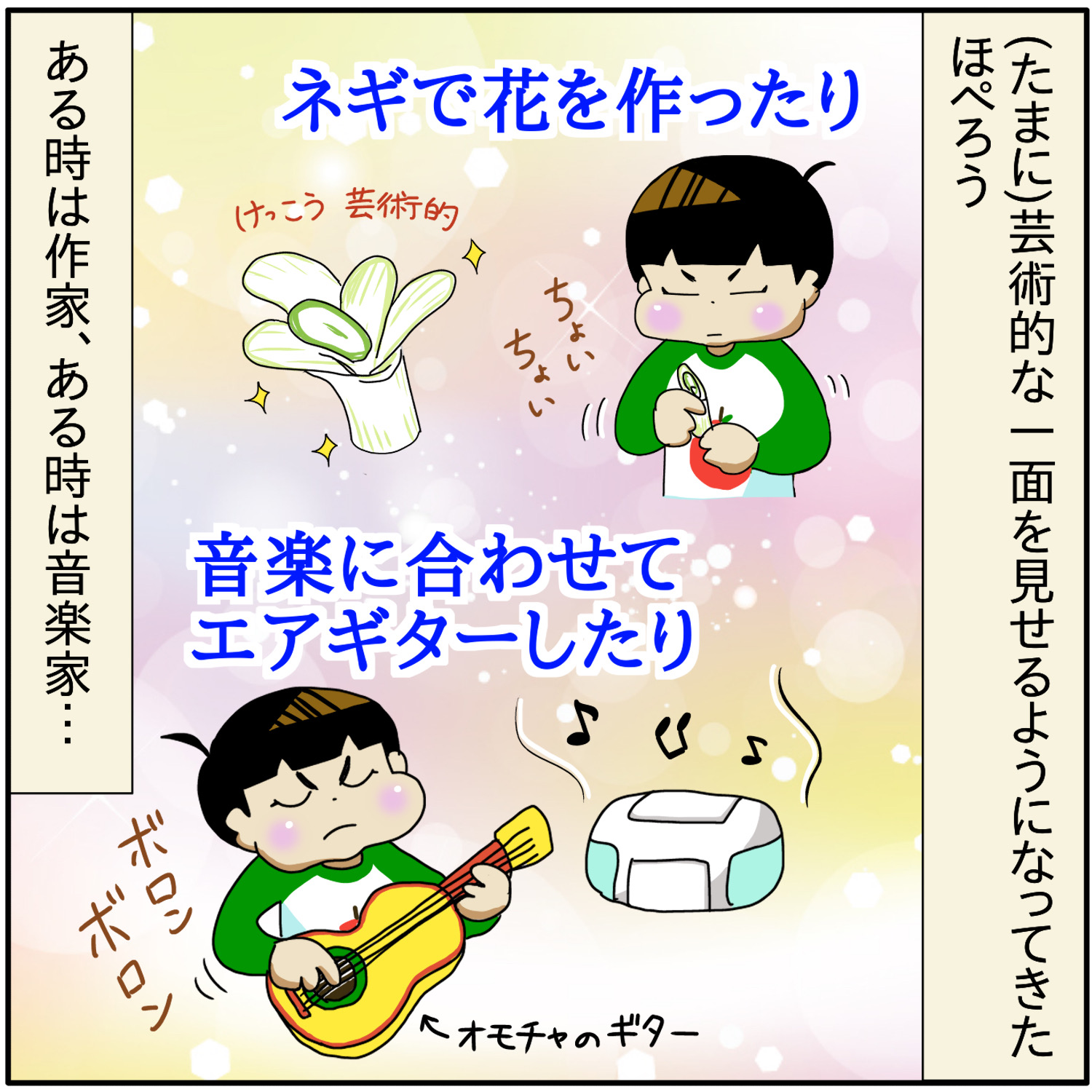芸術がキラリ☆ 2024年05月09日 キラッ☆としたんだろうね…おしっこが↓ ネギの花 \ 最速で更新をお届けします /\ ランキング参加中 /更新の励みになります(^^)にほんブログ村自閉症児育児ランキング 「ほぺろう」カテゴリの最新記事 < 前の記事次の記事 > コメント コメント一覧 (8) 7. 名無し 2024年05月10日 22:24 続きます… つい 勝手に 発語もなかった頃の 我が娘と重ねてしまってました そんな我が娘も ここ半年から一年で ぐっと発語も増えだいぶかいわもなりたつように… 支援学校に入学して 楽しく通っているので 本人には よかったのかなと思ってます 0 ぼさ子 がしました 8. ぼさ子 2024年05月11日 06:11 >>7 コメントありがとうございます😊✨ 娘さんの成長も楽しみですね! 学校も楽しく通えているのが一番✨ 0 ぼさ子 がしました 6. 名無し 2024年05月10日 22:15 途中で送信されちゃった😰 ほぺろうくんも 頑張ってるんですね~ 時々のぞかせてもらって なんとなく、親戚のおばちゃん的な気持ちでいるのて 0 ぼさ子 がしました 5. 名無し 2024年05月10日 22:13 ほぺろうくん 成長してますね~ ときと 0 ぼさ子 がしました 3. なお 2024年05月10日 20:20 ほぺろう君凄いなぁ☺️ 言葉のキャッチボールがちゃんとできてる~❗ つい4~5年前は まだ宇宙語がほとんどだった気がするけど、 詩人のような受け答えができるほど 成長してるんですね~☺️ 次はどんな名言が出るかなぁ~❓️ 0 ぼさ子 がしました 4. ぼさ子 2024年05月10日 20:50 >>3 私もこの漫画描いてて 「アレ?いつの間にか受け答えできてる!?」って 思いました。 たまたまではありますが成長を感じます😭✨ 0 ぼさ子 がしました 1. マトンカレー 2024年05月09日 18:01 ほぺろう君すごーい お母さんの言葉にマイワールド全開できちんと返答している 今まで沢山の言葉を貯めていたんでしょうね。 ボサ子さん今育児が楽しいでしょ? うちも、中度知的障がいの息子がだんだん話したりイヤイヤするようになってきて、育児が楽しくなってきました。 0 ぼさ子 がしました 2. ぼさ子 2024年05月09日 18:31 >>1 マトンカレーさんコメントありがとうございます✨ 育児楽しいです!もう息子が可愛いすぎて(←親バカ🤣) マトンカレーさんの息子さんも可愛いんだろうなぁ…これからも楽しみ💕💕 0 ぼさ子 がしました コメントフォーム 名前 コメント 記事の評価 リセット リセット 顔 星 情報を記憶 コメントを投稿する