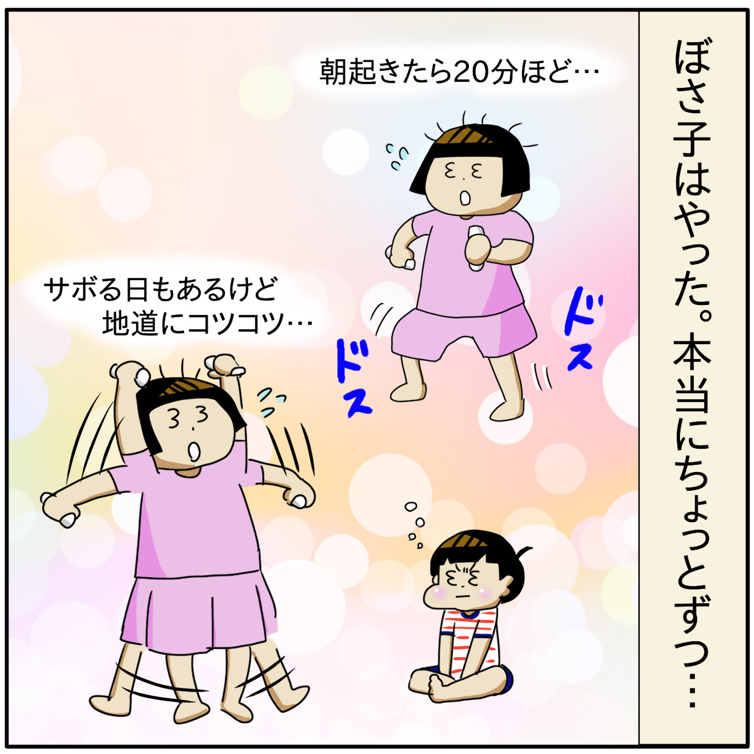 とりあえず腹筋と背筋とスクワット。1日15回ずつ。