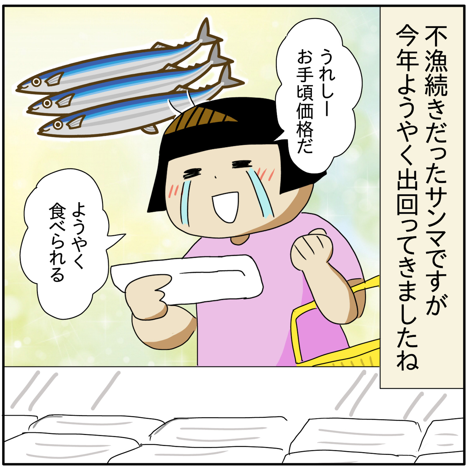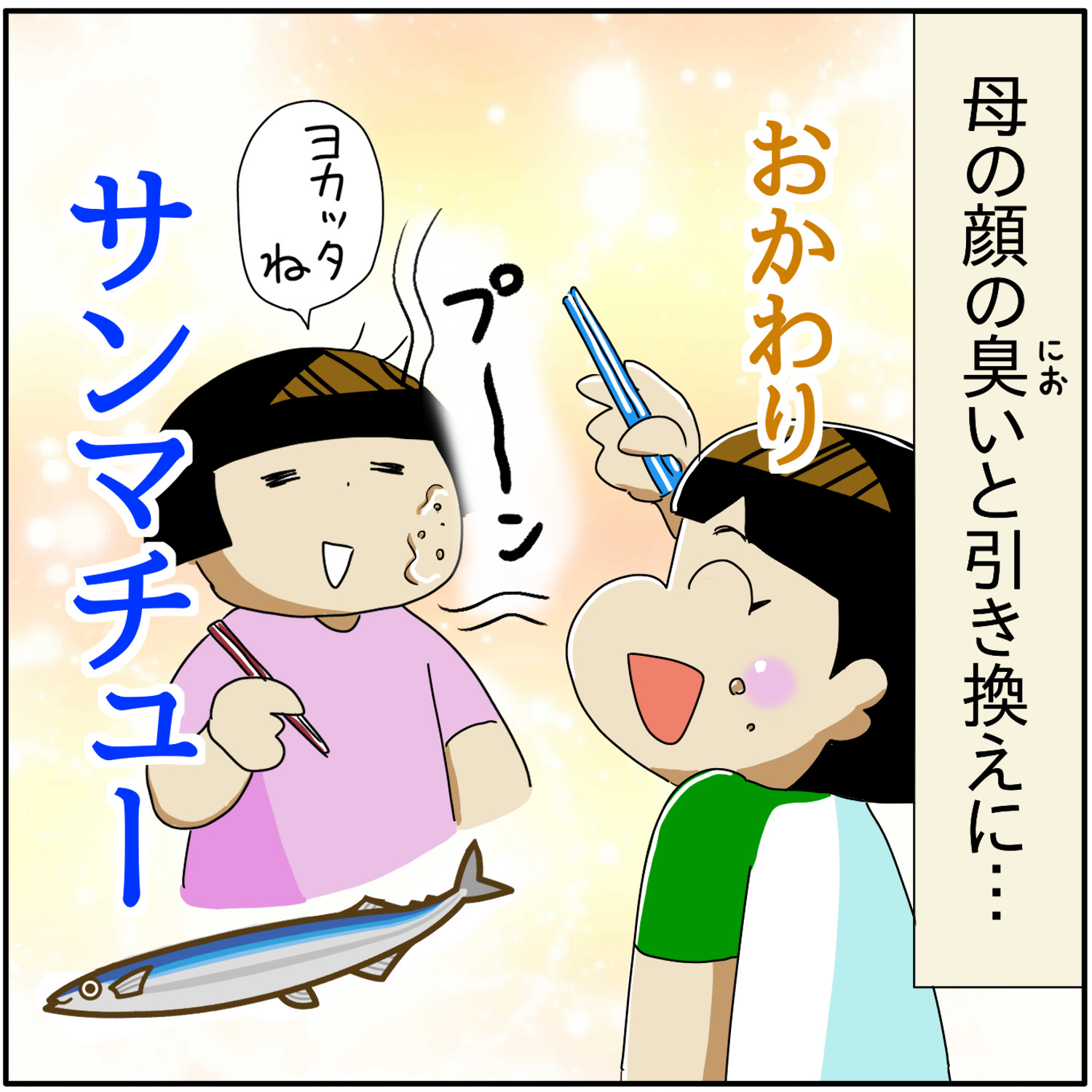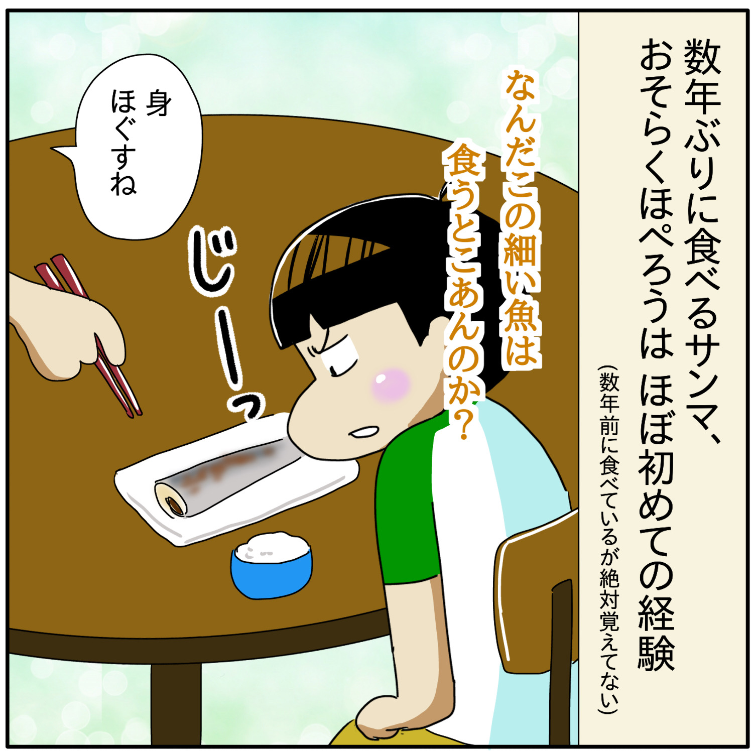 サンマを食べて、ぱあぁぁ〜となる、ほぺろうくんの絵がかわいすぎて、思わずコメントしてしまいました(笑)