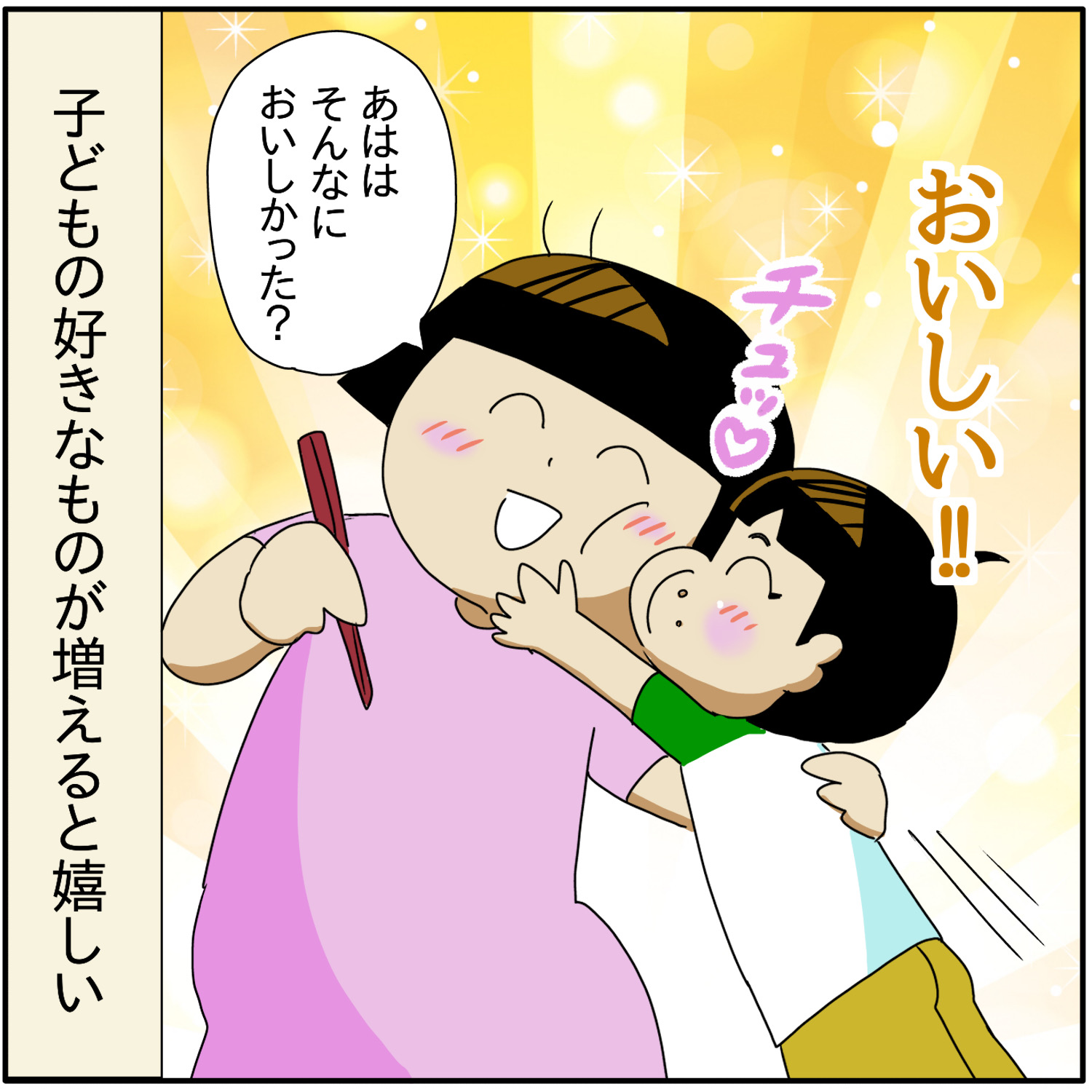 サンマとほぺろう 2024年09月19日 美味しさのあまりチューしてくれるのは嬉しいけど口拭いてからにしておくれ↓ 親で口拭きがちなほぺろう \ 最速で更新をお届けします /\ ランキング参加中 /更新の励みになります(^^)にほんブログ村自閉症児育児ランキング 「ほぺろう」カテゴリの最新記事 < 前の記事次の記事 > コメント コメント一覧 (13) 14. さーちゃん 2025年05月30日 21:13 サンマではなく、我が家はイワシでござりまする!イワシが食べられるようになりました。イワシ苦手でしたが、腸も食べれるようになりました。苦いですが、なんか美味しいです✨骨も尻尾もバリバリ食べています。 0 ぼさ子 がしました 12. さーちゃん 2024年09月26日 22:00 昨日ではなく、明日でした(^_^;) 0 ぼさ子 がしました 11. さーちゃん 2024年09月26日 21:57 10月に就労支援に見学に行きます、 0 ぼさ子 がしました 10. さーちゃん 2024年09月25日 21:36 こんばんは🌙😃❗私は昨日就労支援に電話かけてみます。近くにあるので、送迎もしてもらえるみたいで。 0 ぼさ子 がしました 9. さーちゃん 2024年09月21日 18:35 サンマも、イワシも美味しいですからね♥️鯖の塩焼きも美味しいですよ🎵 0 ぼさ子 がしました 7. くまごろう 2024年09月20日 21:07 ぼさこさん!お久しぶりです! 今、息子の就学の事でてんやわんやですが、 サンマを食べて、ぱあぁぁ〜となる、ほぺろうくんの絵がかわいすぎて、思わずコメントしてしまいました(笑) お魚食べられてえらい❗️😊 0 ぼさ子 がしました 8. ぼさ子 2024年09月21日 05:33 >>7 フフフありがとうございます!お魚食べられてえらい❗️😆✨ 就学準備本お疲れ様です!! 私も経験しましたが本当に忙しいですよね😂 親はたくさん悩んだりてんやわんやしたりとドタバタですが、 くまごろうさんの息子さんのピカピカ一年生、楽しみだなぁ😆🌸🌸🌸 0 ぼさ子 がしました 4. チアキ 2024年09月19日 20:19 サンマチュー😆 まぁまぁ…何か、DHA的な効果があると思いましょう!😂 0 ぼさ子 がしました 6. ぼさ子 2024年09月19日 20:50 >>4 皮膚から吸収するタイプのDHAと思っておきましょう🤣 0 ぼさ子 がしました 3. さーちゃん 2024年09月19日 20:00 ほぺろうくんにも、秋のサンマが!サンマ美味しいですよね。大根おろしと、醤油で。ほぺろうくんにもサンマの美味しさが分かりましたか❗良かった。 0 ぼさ子 がしました 5. ぼさ子 2024年09月19日 20:49 >>3 ようやくサンマが食べられて良かったです😊 0 ぼさ子 がしました 1. キーマカレー 2024年09月19日 18:16 チューしてくれるなんてうれし~ ペー太とほぺろうくん両手に花のボサ子さん 幸せですね。 0 ぼさ子 がしました 2. ぼさ子 2024年09月19日 19:21 >>1 ありがとうございます幸せです🤣💖 しかしぺー太がチューしてきたらカラテチョップします笑 0 ぼさ子 がしました コメントフォーム 名前 コメント 記事の評価 リセット リセット 顔 星 情報を記憶 コメントを投稿する