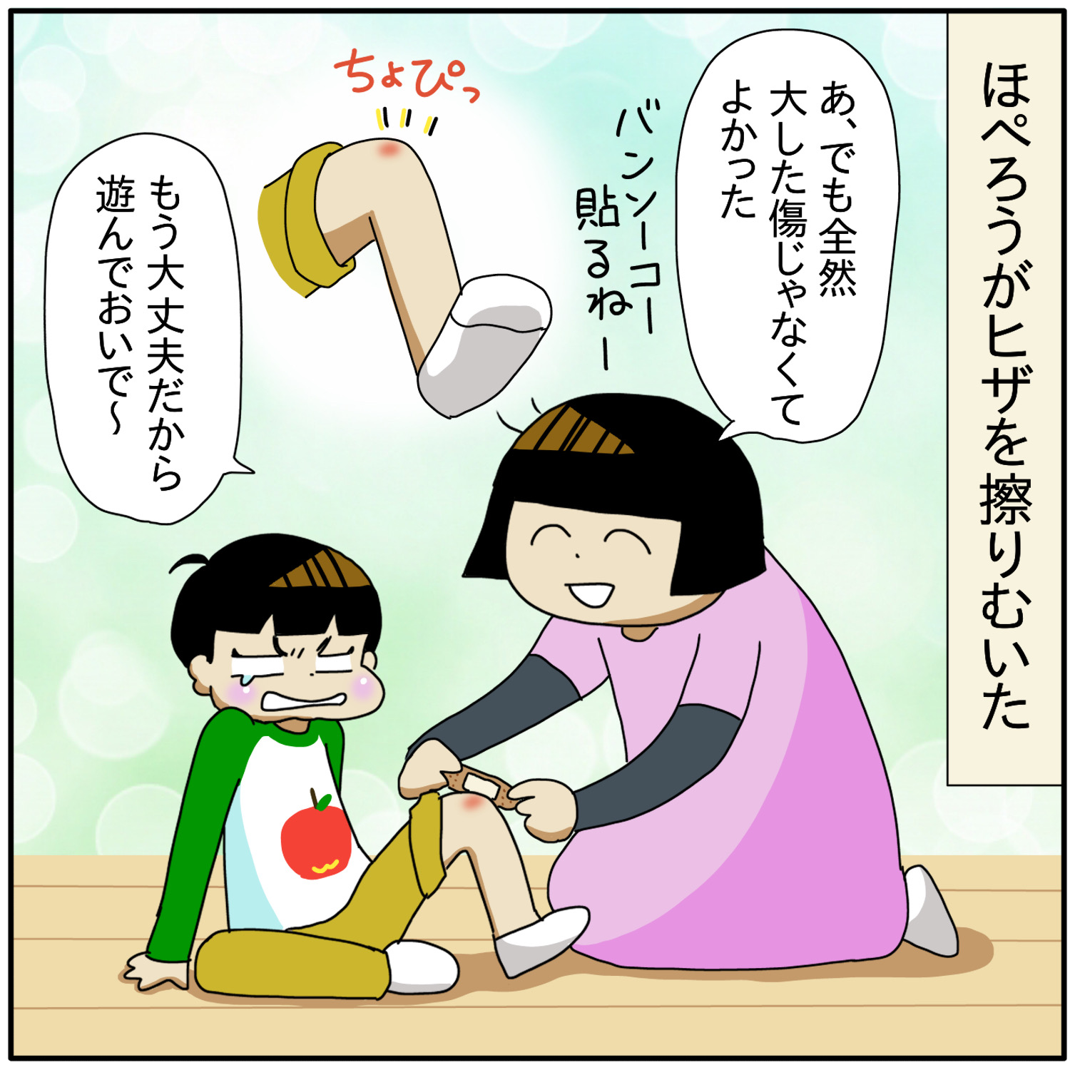 演技派ほぺろう 2024年11月28日 いつの間に『演技する』ということを覚えたんだろう(ちゃんとクッションに倒れ込んでるし)…という成長を感じる反面、全然大したことないからとツッコまずにはいられない。 だけどケガしても以前より泣かなくなった!↓ ケガとほぺろう ↓ 瀕死アピールお父さん \ 最速で更新をお届けします /\ ランキング参加中 /更新の励みになります(^^)にほんブログ村自閉症児育児ランキング 「ほぺろう」カテゴリの最新記事 < 前の記事次の記事 > コメント コメント一覧 (4) 3. マグ 2024年12月01日 09:03 ほぺろうくんの情緒、どんどん豊かになっていて凄いです…!ぼさこさんの漫画を通じて、ほぺろうくんに会ったことのない私がその成長を感じられるの、なんだか贅沢させてもらっている気分です。 0 ぼさ子 がしました 4. ぼさ子 2024年12月01日 11:05 >>3 マグさんコメントありがとうございます😍✨ 自分では深く考えずに漫画にしていましたが マグさんがほぺろうの成長に気づいてくださったことで 私も改めてほぺろうの成長を感じることができました。 ありがとうございます‼️✨ 0 ぼさ子 がしました 1. キーマカレー 2024年11月30日 13:08 さっすが、ペー太の息子。 中二病まっしぐら。これから絆創膏ではなく、包帯を巻きたがったり、眼帯をつけたかったりするようになりますよ。 「このオレにこんなキズをおわせるとは」って話すようになるかもしれませんね そしたら、是非ブログにのせてくださいね 楽しみしています。 0 ぼさ子 がしました 2. ぼさ子 2024年11月30日 14:07 >>1 そうですね🤣 だんだん隻眼ぶったり隻腕ぶったりもするかもしれません。 そうなったら成長記録としてブログにのせます笑 0 ぼさ子 がしました コメントフォーム 名前 コメント 記事の評価 リセット リセット 顔 星 情報を記憶 コメントを投稿する