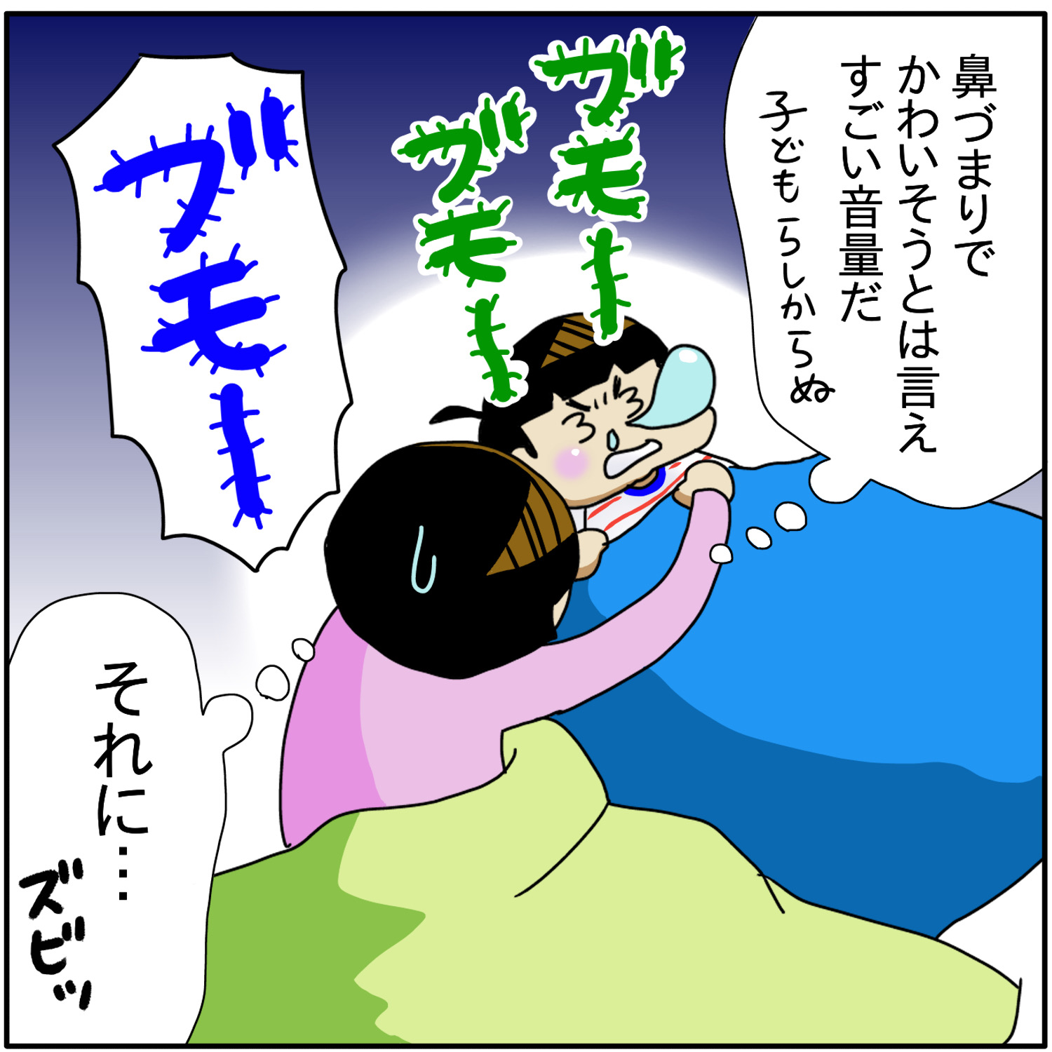 ちなみにうちの息子も、絶賛鼻風邪真っ最中で、同じウシガエル状態です笑