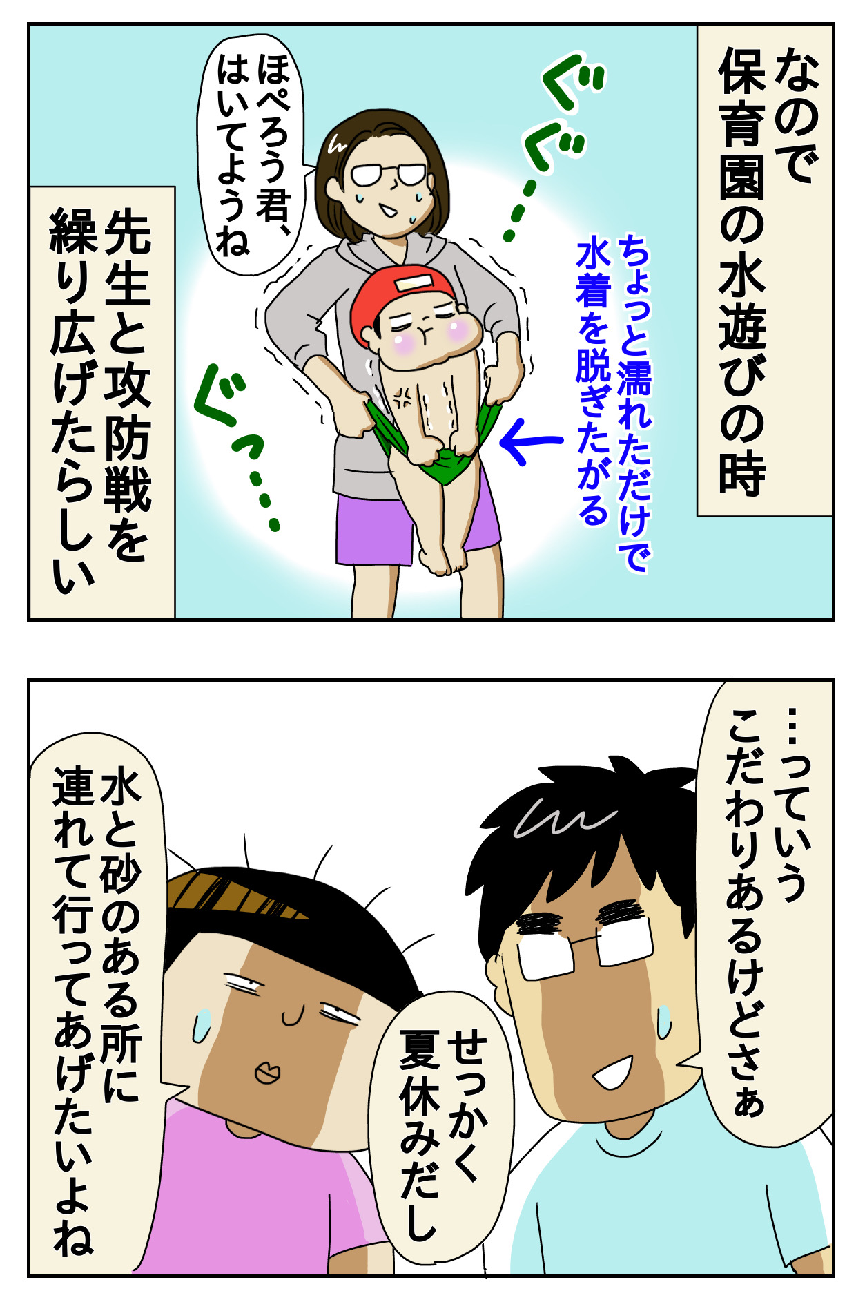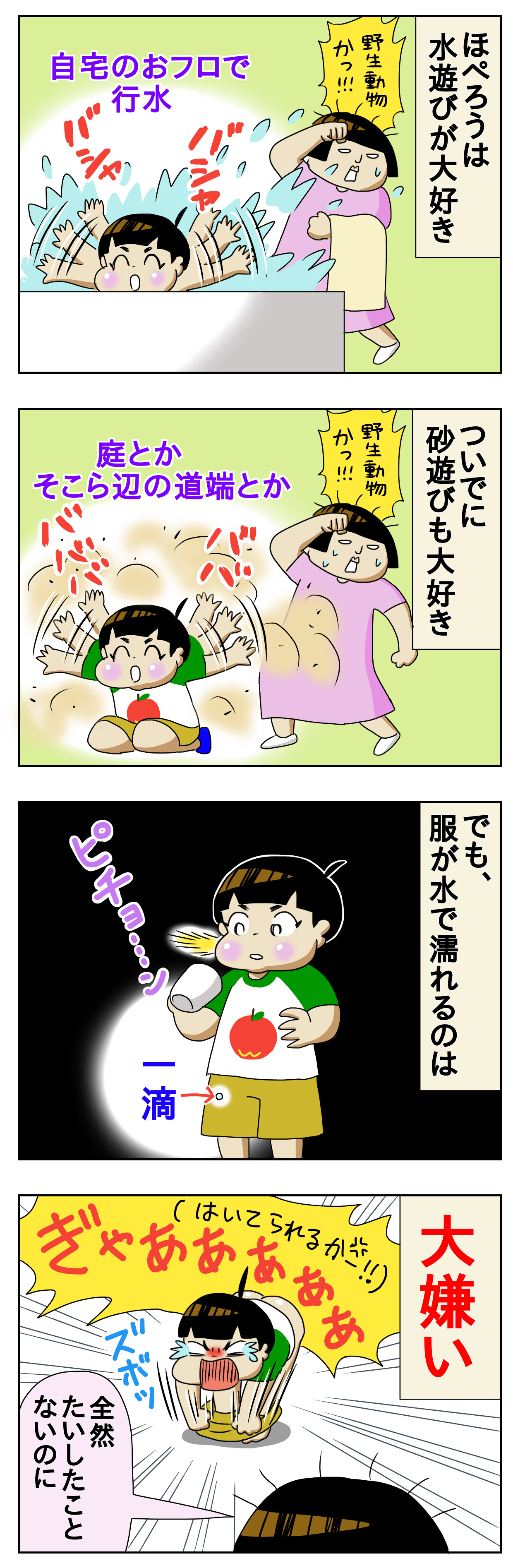 まず人それぞれでしょうが、水遊びで濡れるのと濡れたくもないのに濡れるのはかなり違うと思います(笑)