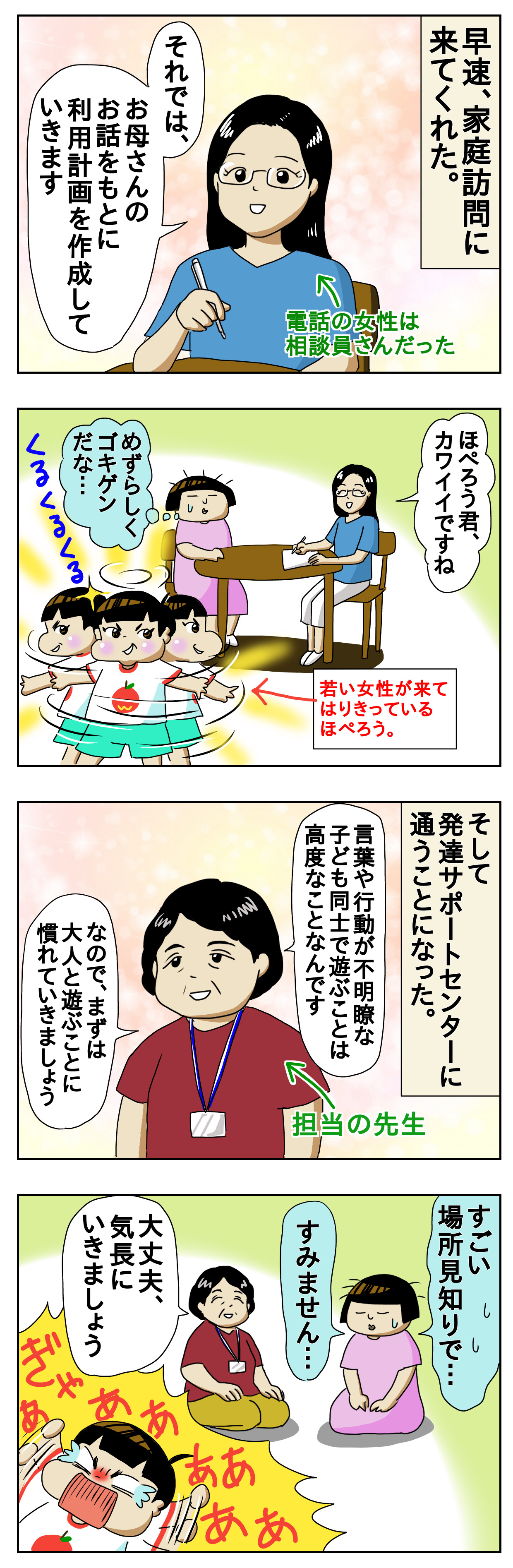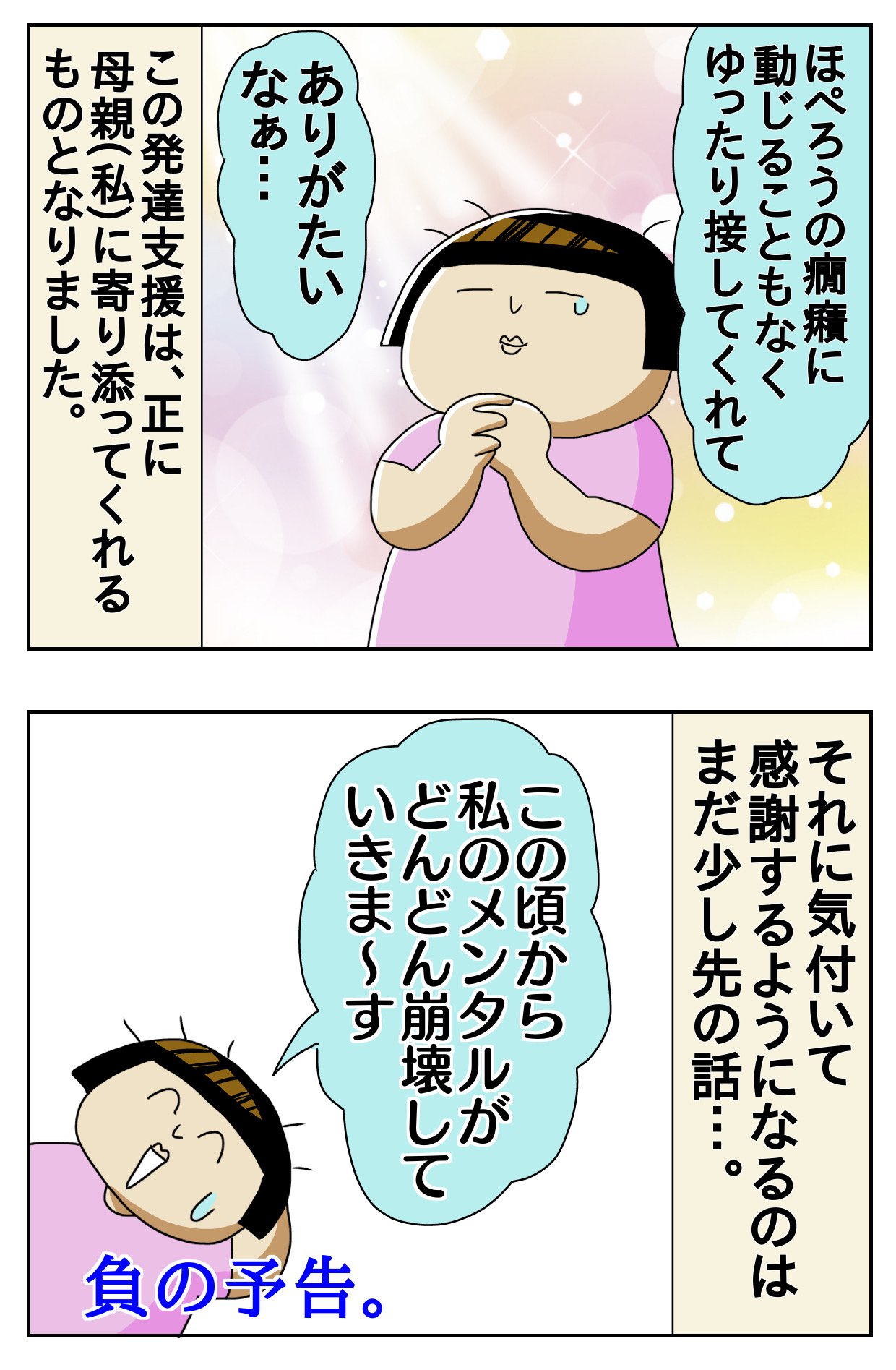 発達障害が判明するまで28 2020年10月10日 ↓ 前回のお話 引越し後、初めて発達支援に電話してからトントンと話を進めてくださって、利用計画を作成し療育通いできる様にしてくれました。こちらの発達支援は、今ではほぺろうよりも私がお世話になってる!!ってくらい 感謝しています。でも、感謝する心の余裕ができるのはもう少し先の話…。この時はまだ、良い発達支援に巡り会えて めでたしめでたし…とは行きませんでした。↓ 続き ↓ 過去漫画もアップしてます にほんブログ村自閉症児育児ランキング 「発達障害が判明するまで」カテゴリの最新記事 < 前の記事次の記事 > コメント コメント一覧 (5) 6. さーちゃん 2024年03月18日 16:40 私もいつか自立しなきゃな。と思っています。しかし、まだ母がいますので、思いっきり甘えております。仕事の時もサポートしてくれたら助かります。病院は、もちろん一人で行っております。 0 ぼさ子 がしました 3. めろ 2020年10月10日 20:48 いつも読ませていただいてます(*^^*) 絵が見やすくてわかりやすくて大好きです♪ 引越によっていいセンターとの出会いがあってよかった…!と思ったら不穏な予告が(ToT) ドキドキしながら更新まってます(>_<) 0 ぼさ子 がしました 4. ぼさ子 2020年10月10日 21:24 >>3 ブログご覧くださって嬉しいです!ありがとうございます😆✨✨ 良いセンターに出会ったものの、グラグラに揺れ動く親心が始まりますよー。 0 ぼさ子 がしました 1. 匿名 2020年10月10日 09:04 お引越しがあって、本当に良かったですね✨と思ったら、負の予告…😨 0 ぼさ子 がしました 2. ぼさ子 2020年10月10日 13:32 >>1 そうなんです。えへへ…😅 0 ぼさ子 がしました コメントフォーム 名前 コメント 記事の評価 リセット リセット 顔 星 情報を記憶 コメントを投稿する
