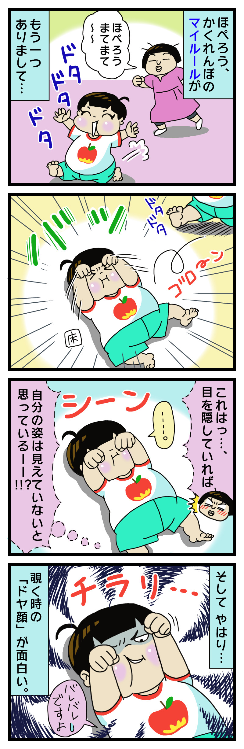マイルールかくれんぼ2 2017年06月23日 *こちらは ほぺろうが1歳半~2歳(2017年)の時に 描いた四コマ漫画で、 当時はまだ ほぺろうの障害に 気付いていませんでした。 『ほぺろうの自閉症マンガ』本編は 2020年から始まります。2017年6月23日 (2021年1月編集)謎のマイルールもそうだし、こっちを覗く時の悪い顔が面白い。↓ マイルールかくれんぼ1 にほんブログ村自閉症児育児ランキング 「過去漫画」カテゴリの最新記事 < 前の記事次の記事 > コメント コメントフォーム 名前 コメント 記事の評価 リセット リセット 顔 星 情報を記憶 コメントを投稿する