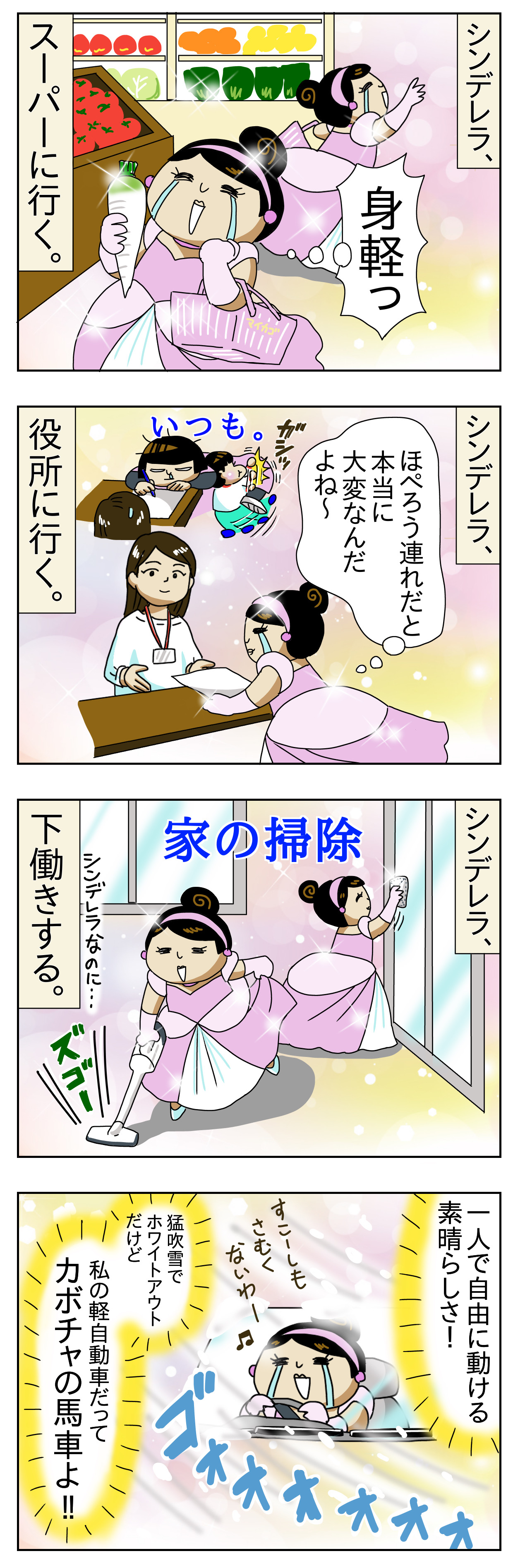 ヤサグレ時代45 児童発達支援事業所 シンデレラタイム 2021年01月21日 ↓ 前回のお話 ガラスの靴じゃなくてただの長靴だけど…思わぬ身軽さに心は踊っていました。 でも、貴重な自由時間なのについ家事をやってしまう主婦の性(さが)!!↓ 続き ↓ 過去漫画もアップしてます にほんブログ村自閉症児育児ランキング 「障害育児に対するヤサグレ時代」カテゴリの最新記事 < 前の記事次の記事 > コメント コメント一覧 (2) 1. らら 2021年01月22日 12:58 シンデレラタイム!笑いました😆 ほんと鐘が鳴るまで、ほんのひとときのシンデレラタイム笑 で、やってることは舞踏会行く前ですやん!と突っ込みたくなりました😆 私も同じでしたよー😂 ゆっくり料理を作るの幸せよ🤣 畳んだ洗濯物を破壊されない幸せよ🤣 0 ぼさ子 がしました 2. ぼさ子 2021年01月22日 14:11 >>1 自由時間に家事をやるという…実はお母さん業ってシンデレラより過酷😅 でも邪魔されずに仕事が進むのって貴重な時間なんですよね! 癇癪で家事を中断されない幸せよ🤣 0 ぼさ子 がしました コメントフォーム 名前 コメント 記事の評価 リセット リセット 顔 星 情報を記憶 コメントを投稿する