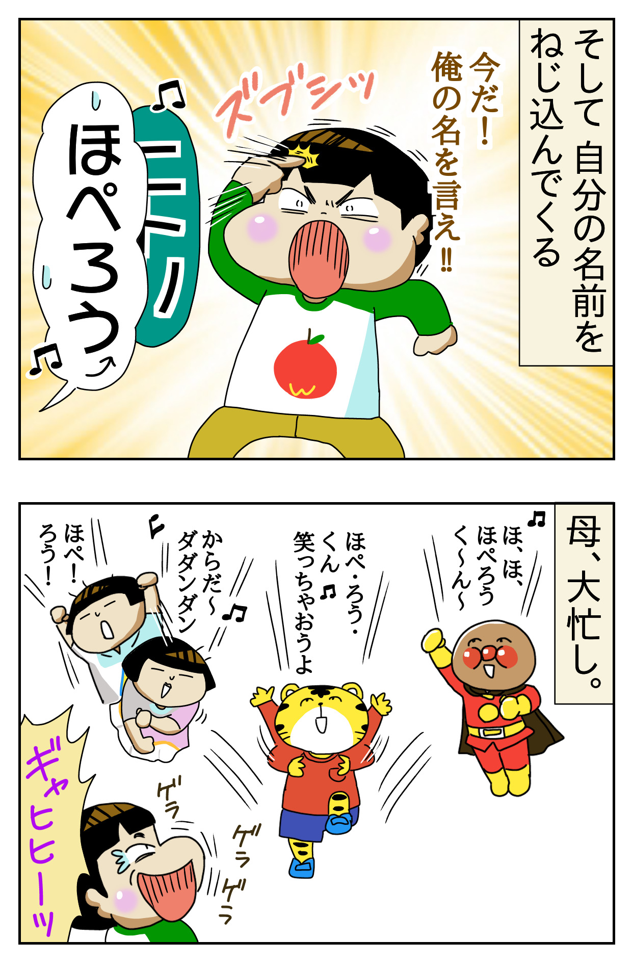 替え歌と自分が大好きな息子の話 2021年05月24日 *しまじろうぼさ子が歌ってるのは『トモダチのわお!』の替え歌。全てに自分をねじ込んでくる図々しさよ。(母ゆずり?)絵本読む時も隙あらば自分の名前をねじ込ませようとしてくる。↓ 続編 ↓ 自分のおでこを指差すほぺろう ↓ 過去漫画もアップしてます にほんブログ村自閉症児育児ランキング 「ほぺろう 5歳」カテゴリの最新記事 < 前の記事次の記事 > コメント コメントフォーム 名前 コメント 記事の評価 リセット リセット 顔 星 情報を記憶 コメントを投稿する