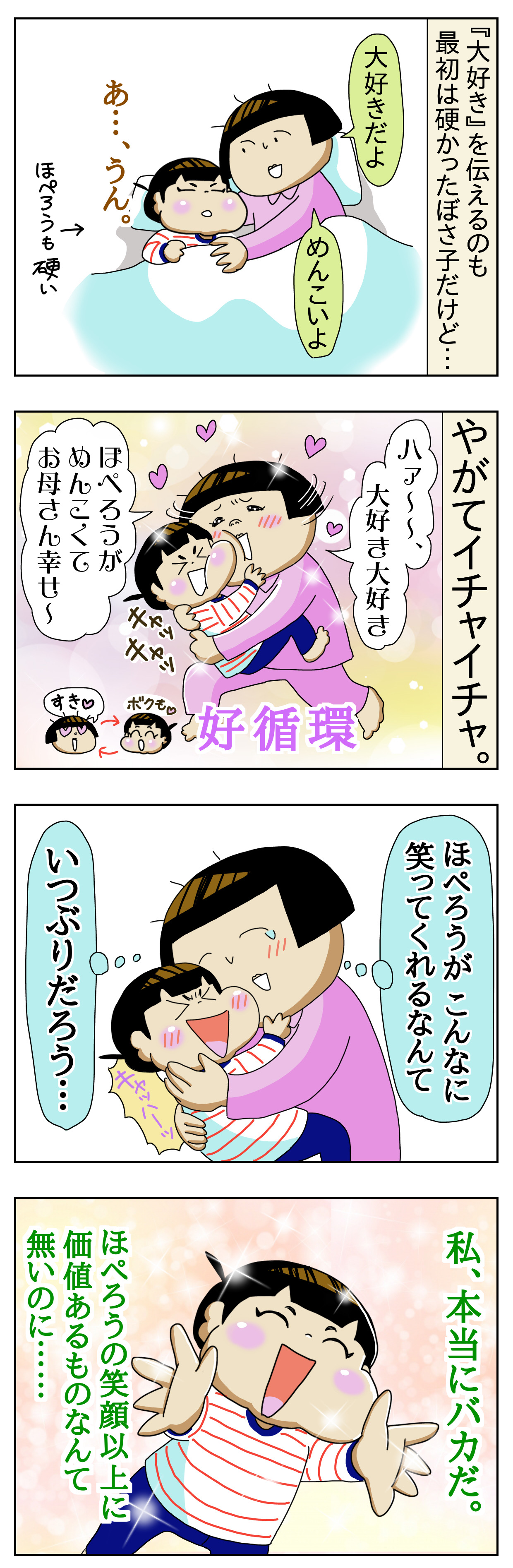 私も息子と寝るとき、大好き、宝物、可愛いとたくさん言います。