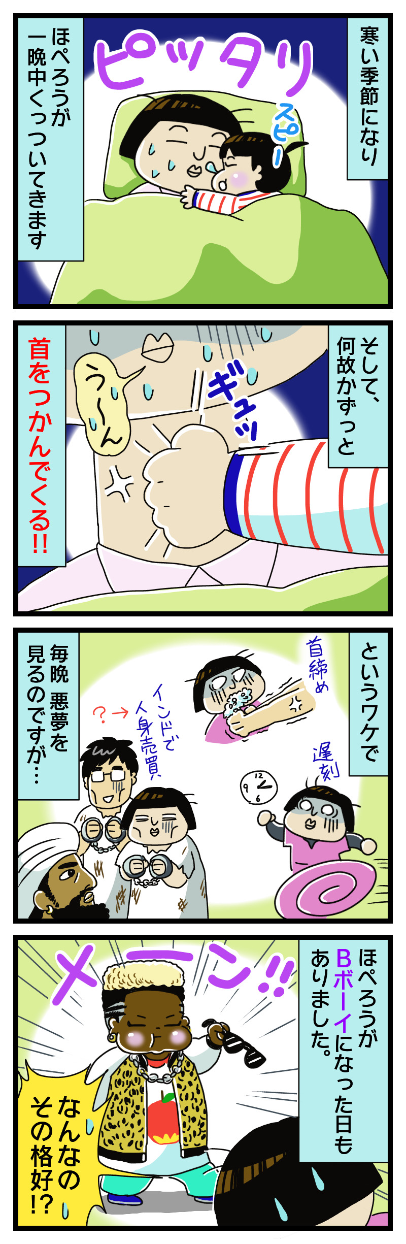 悪夢の原因 2017年11月14日 *こちらは ほぺろうが1歳半~2歳(2017年)の時に 描いた四コマ漫画で、 当時はまだ ほぺろうの障害に 気付いていませんでした。 『ほぺろうの自閉症マンガ』本編は 2020年から始まります。2017年11月14日 (2021年6月編集)毎晩いろんな種類の悪夢を見たわ。(エンタメ)にほんブログ村自閉症児育児ランキング 「過去漫画」カテゴリの最新記事 < 前の記事次の記事 > コメント コメントフォーム 名前 コメント 記事の評価 リセット リセット 顔 星 情報を記憶 コメントを投稿する