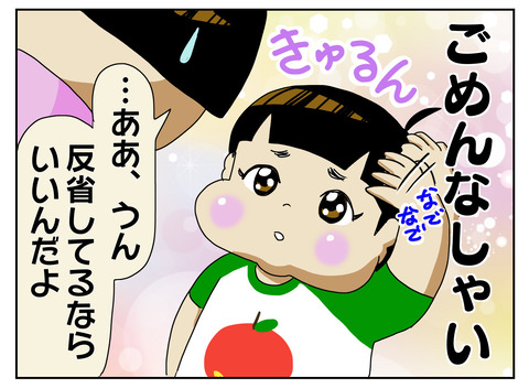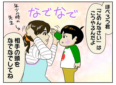 分かってないんだか確信犯なんだか 昨日の記事『ごめんなさい』を伝える方法の様に、4歳になった今でも『自分なでなで』のごめんなさいは健在です。(っていうか直らない)多分反省は全然してない。おそらく ほぺろうの中では『ごめんなさいジェスチャー』は怒られたらやるものであり、“もうやってはいけない” ... 2020年06月20日 続きを読む