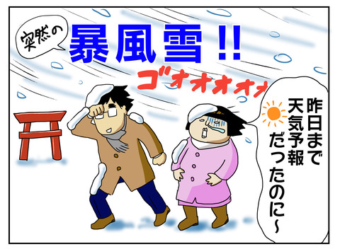 生まれる前から波乱万丈【ほぺろう 胎児編】5 ↓ 前回の続きです。 せっかくの安産祈願の日。前日まで天気予報は『晴れ』だったのにまさかの暴風雪。不吉でしかない(ToT)ただの気の持ちようなんですが、今までの経過が経過だし妊娠中で情緒不安定になりがちだしで、「神様に嫌われてるのでは…」と不安になりました。【 ... 2020年07月15日 続きを読む